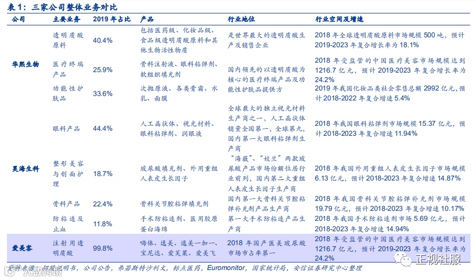 1.业务总览:华熙自上而下降维打击,昊海横向铺开,爱美客专注HA填充