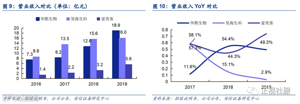 3.财务对比:华熙生物体量最大,爱美客医美线增速最高