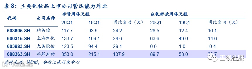 5)营运能力方面,品牌为应对疫情影响加大备货。2020Q1相比去年同期,化妆品公司存货都有较大的增长,珀莱雅/上海家化/丸美/华熙生物存货周转天数分别同比增加24/25/29/138天,主要系春节及疫情期间加大备货量,疫情影响下上游原材料有所涨价,增加备货有利于应对价格上涨风险;应收账款方面,为激励经销商进货,在应收账款方面有所放宽,20Q1应收账款周转天数同比去年有所延长。