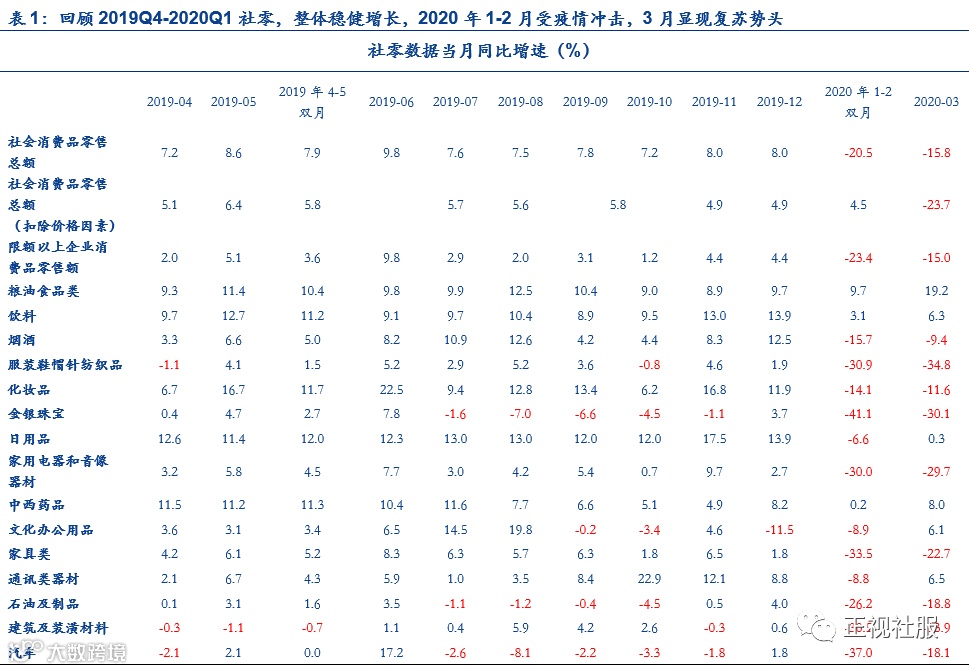 1.商贸零售行业2019年年报及2020Q1季报总结:必选稳健龙头向好,可选需求亟待释放