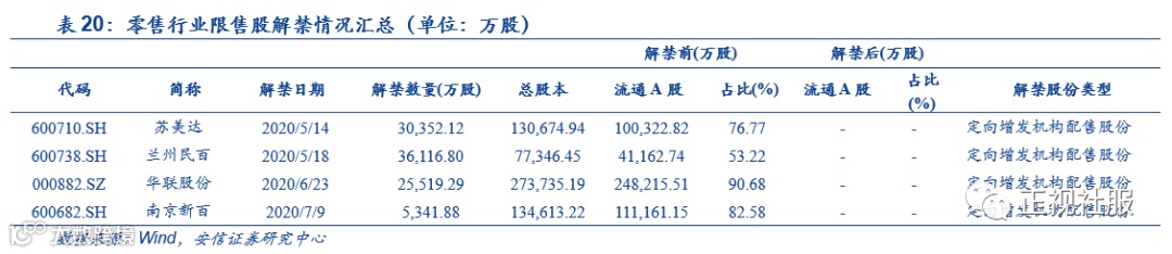 附录:零售板块近期解禁