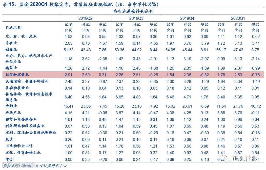 1.4.零售板块基金一季度持仓:仍处低配,配置比例有所上调