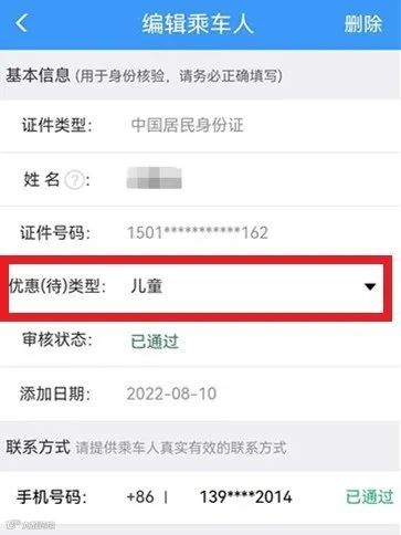 首先,在铁路12306App上将免费乘车儿童添加为乘车人。