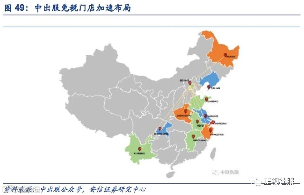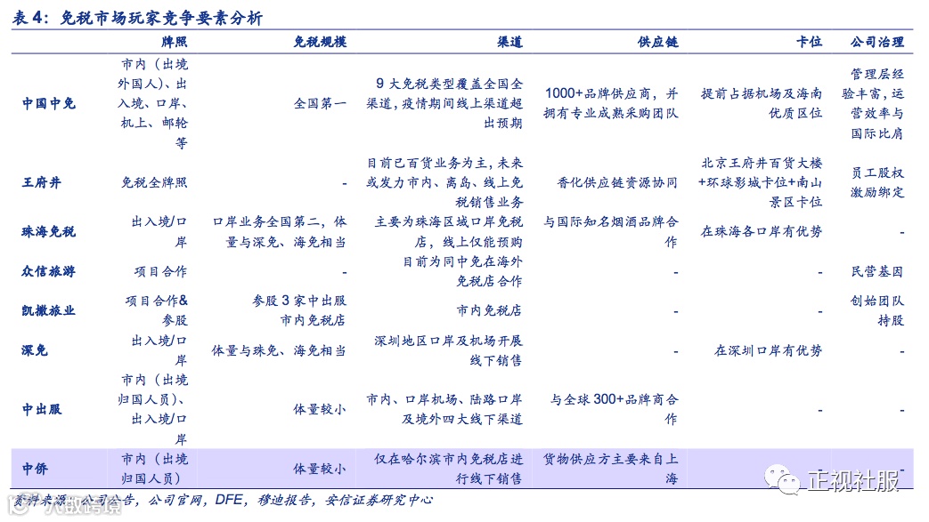 此外,中出服公司拥有包括市内、口岸机场、陆路口岸及境外四大线下渠道。深圳免税则在 口岸及机场开展线下销售。中侨仅在哈尔滨市内免税店进行线下销售。