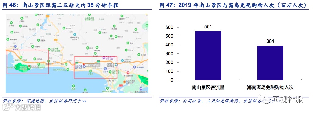 首旅集团在海南布局优质景区南山景区,未来不排除与王府井发展“旅游+购物”模式,助力王府井离岛免税业务发展。1)南山景区是中国国家AAAAA旅游景区,其位于海南省三亚市西南40公里处,距市中心交通便利,为首旅酒店直接持股73.81%,系首旅集团旗下的海南板块景区核心资产之一。南山景区拥有众多著名旅游景点如:南山寺、海上观音、不二法门、观音文化苑等。其中,108米海上观音为世界首尊金玉观世音菩萨塑像,也是海南旅游绝大多数旅客选择的景点。根据海南省旅游景区协会2017至2019年所公布的数据,南山景区年平均客流达551万人次,居三亚市旅游景区客流排名前三。。2)“旅游+免税”的经营模式符合一站式消费需求,在景区附近开设免税店已在各国各地都有先例并取得成功,如香港迪士尼乐园与太阳免税店,日本东京迪士尼乐园和乐天免税店等。海南离岛免税是中国大陆首个试点地区并在开始时就受到消费者的欢迎。若背靠首旅集团资源,王府井在南山景区附近开设离岛免税店,则有望在初期帮助王府井离岛免税业务实现快速引流,做大做强。