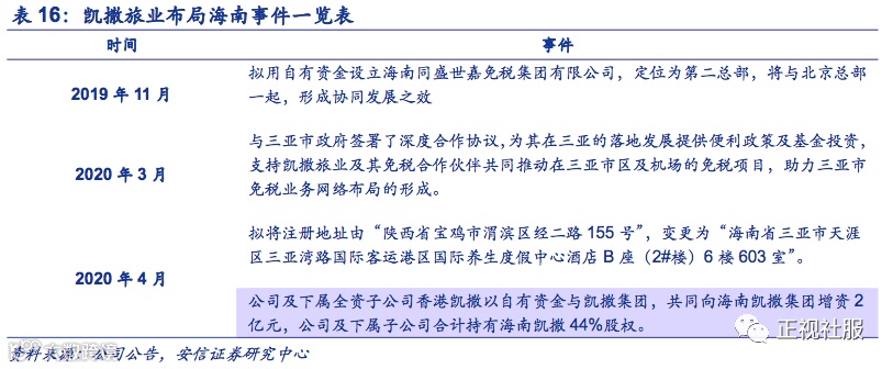 迁址三亚,持续加码全面布局海南,有望扩大海南板块布局。凯撒旅业于2019年11月拟用自有资金设立海南同盛世嘉免税集团有限公司,海南凯撒集团设立后成为凯撒旅业免税业务的管理平台,为日后深入布局免税业务奠定基础;2020年3月公司与三亚市政府签署了深度合作协议,三亚市政府为其在三亚的落地发展提供便利政策及基金投资,进一步助推公司免税业态落实布局与发展。公司在今年4月9日宣布变更公司注册地址以及增资海南凯撒集团;同期,公司及下属全资子公司香港凯撒以自有资金与凯撒集团,共同向海南凯撒集团增资2亿元,持续夯实海南布局。我们认为公司在本次迁址三亚、加码海南后,有望加速落地海南的重要战略部署,借助集团的产业链条及资源、以资本为纽带,孵化旅游+业务,快速推进免税业态布局。