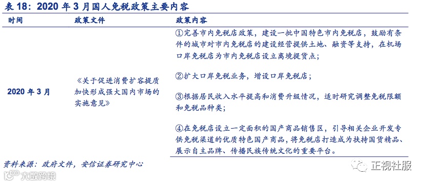 3月:顶层设计提出鼓励发展市内免税店、离岛免税线上补购政策出台。我国在今年3月已从顶层设计出台,提出完善市内免税店政策,建设一批中国特色市内免税店,鼓励有条件的城市对市内免税店提供建设土地、融资等支持。
