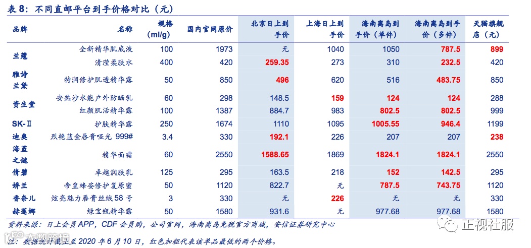 供应链优势使得消费者可在不同贸易模式下享受免税价格,海南离岛免税补购折扣力度较大。三种直邮模式下,日上上海和北京直邮采用一般贸易和跨境电商模式,均会产生税费,由中免集团缴纳。但依托于公司强大的的供应链优势和品牌合作关系,公司拿货具备一定价格优势,使得直邮商品价格与线下免税店价格基本一致,相较于天猫旗舰店价格低10%-50%不等。从购买折扣看,海南离岛免税折扣力度较大,形式主要有单件直接折扣(主要为8折~8.5折)、单件买返现金券(下次可用,主要为7.5折~8折)、3件直接折扣(主要为7.5折~8折)。北京日上大部分商品相较原价在85折~95折左右;上海日上未直接表明有折扣,但是商品价格普遍低于天猫旗舰店;天猫旗舰店的促销活动形式主要为送赠品。