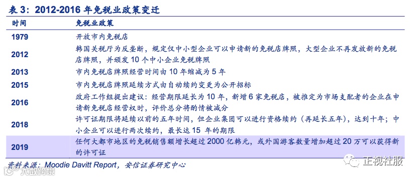 为反垄断逐步放开牌照限制,原有牌照存续方式改为公开招标。韩国1979发放市内免税牌照,牌照经营期为10年。2012年为反垄断,规定不再向大型企业发放新的市内免税店牌照,2015年,变牌照为公开招标制,被推定为市场支配者(据现行的公平交易法显示,如果某家企业在市场中的销售比重超过了50%或3家以下的企业共同占据了市场的75%以上时,将被推定为有市场支配性的企业)的企业在申请新免税店经营权时,评价总分将酌情被减分。
