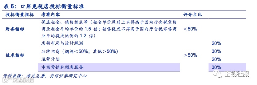 机场及口岸免税店经营权以竞标形式确定,门店运营能力和投标报价能力起着关键作用。口岸免税店通过招标方式确定。根据2019年发布的《口岸出境免税店管理暂行办法》和2018年印发的《关于印发口岸进境免税店管理暂行办法补充规定的通知》,对原经国务院批准具有免税品经营资质,且近5 年有连续经营口岸或市内进出境免税店业绩的企业,放开经营免税店的地域和类别限制,准予企业平等竞标口岸出境免税店经营权。依据我国现有口岸免税招标考核指标,具备较强的店铺布局与设计规划、品牌招商、运营计划、市场营销和顾客服务能力有助于帮助免税经营商获得口岸免税经营权。较高的投标租金和销售提成的报价可以帮助免税商获得较高的财务指标得分,但过高的报价会压缩免税商的利润空间,因此把控合理的投标报价的能力是免税商的重要竞争力之一。