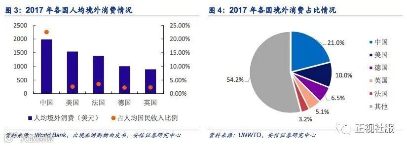 我国消费溢出现象明显,回流空间巨大。从国内供求关系来看,国内对免税品需求远大于供给,大量需求在海外市场得到满足。根据UNWTO统计口径,2017年中国境外消费达到2580亿美元,排名全球第一,平均消费达到1985美元。从全球视野出发,中国海外市场消费体量巨大,民众普遍对旅游消费投入较高,占人均收入比重高,而在旅游消费中,购物占据超25%的份额,海外购物消费达到762美元,远超非中国游客486美元的境外购物,是非中国游客的1.56倍,对海外及亚太地区免税业务推动效应明显。
