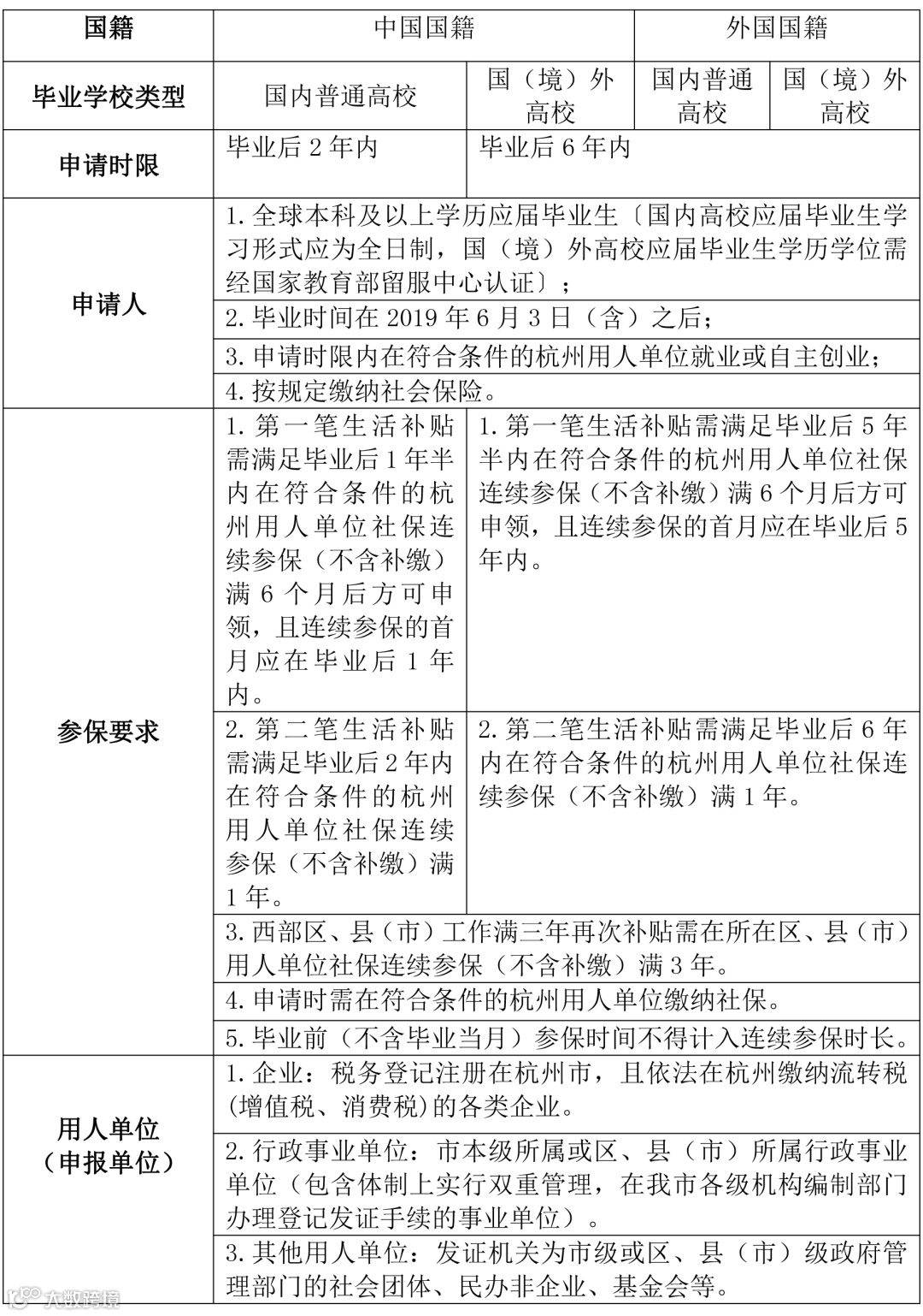 应届大学毕业生在富阳区、临安区、桐庐县、淳安县、建德市等西部区、县(市)工作满3年后,再给予本科1万元、硕士3万元、博士10万元一次性生活补贴,其中按原标准(5万)申领补贴的博士,仍按原标准执行。