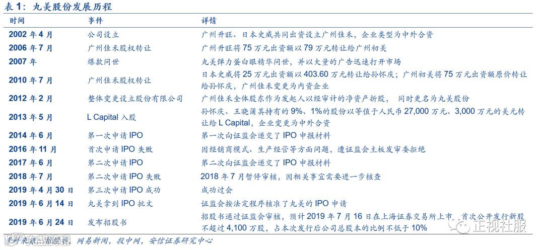 丸美股份申请IPO历时5年。2014年6月,丸美股份首次报送IPO申请材料,2016年11月被发审委审核否决:证监会要求丸美股份结合经销协议、进销价格等补充说明相关经销模式披露及风险揭示是否完整准确,以及公司及经销商是否涉嫌从事传销和涉嫌违反《禁止传销条例》的相关规定。2017年6月丸美股份第二次提交IPO申请,2018年3月予以披露更新, 7月因相关事宜需要进一步核查,证监会取消对其审核。2019年4月30日,丸美股份终于成功过会,6月14日晚,证监会按法定程序核准了丸美的IPO申请,将于上海证券交易所挂牌交易,发行日期为7月16日,每股发行价格预计20.54元。