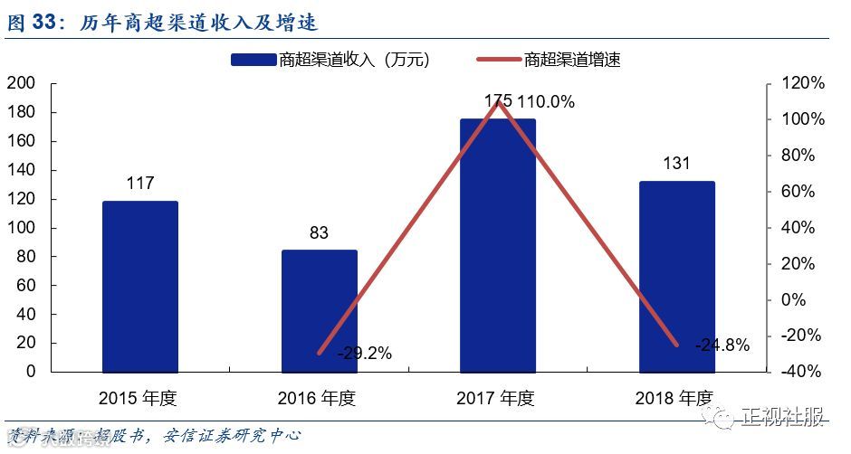 2018年商超渠道收入大幅下降,降幅为-24.8%。商超渠道主要通过大卖场、中大型连锁超市等网点销售产品。此外,2016年1月,公司通过广州春美化妆品有限公司开发了屈臣氏商超销售渠道,2016 年 12 月始,公司产品不再通过广州春美销售给屈臣氏,改为公司直接与屈臣氏采用代销模式进行交易。于2017年下半年终止了与屈臣氏的合作。
