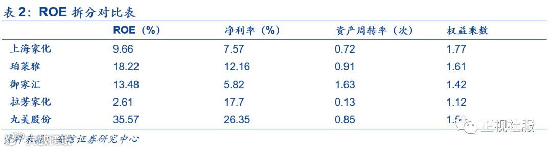 丸美股份盈利能力远高于行业水平。丸美股份毛利率约在68%,同行业可比上市公司均在50%-65%之间。丸美股份的毛利率高于同行业上市公司。丸美股份的净资产收益率为35.57%,远高于其他几家公司的2%-19%。丸美股份高盈利能力主要源于三个因素:高定价、低返利、折扣力度小,凸显品牌溢价,展现未来较大扩张潜力。
