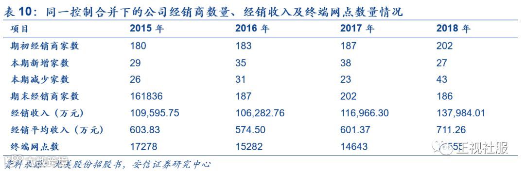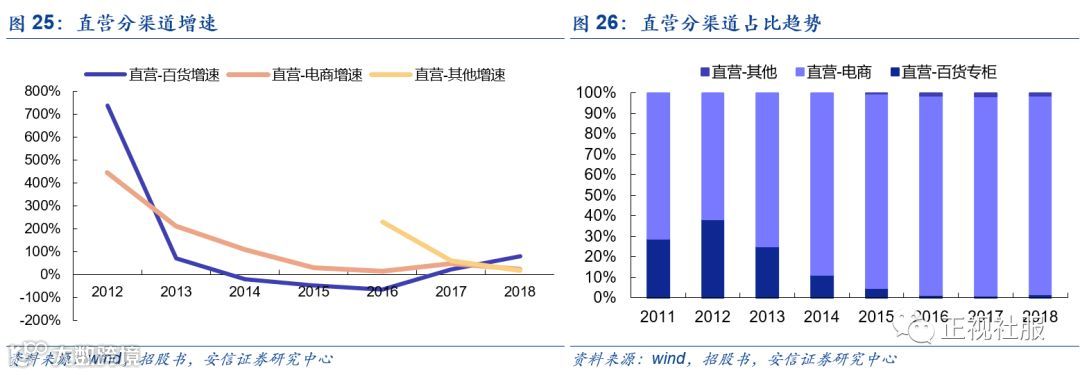 线上经销高速增长,重要性持续提升。2013-2018年线上经销收入年化增速约47%,占比由2012年的0.4%提升至2018年的34.1%。此外,其他经销渠道2016/2017收入有所下滑,但2018年均已呈回升趋势。