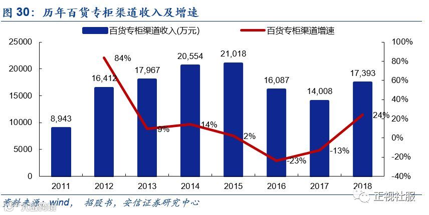 3.2.3. 百货专柜:18年增速反弹,或受益于高端新品