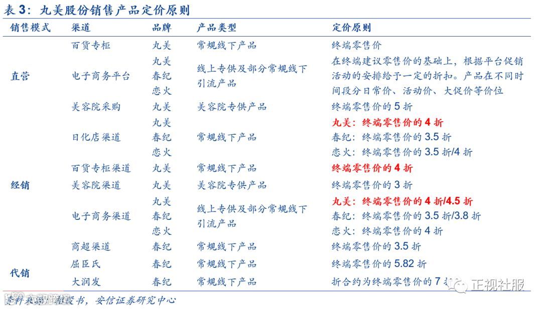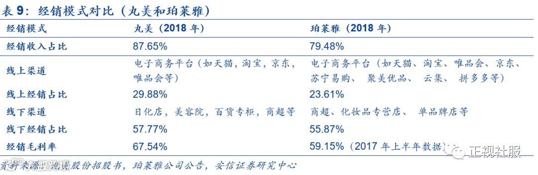 与珀莱雅相比,丸美直营比例较低。线上直营以天猫旗舰店为主,线下以百货专柜、美容院为主。