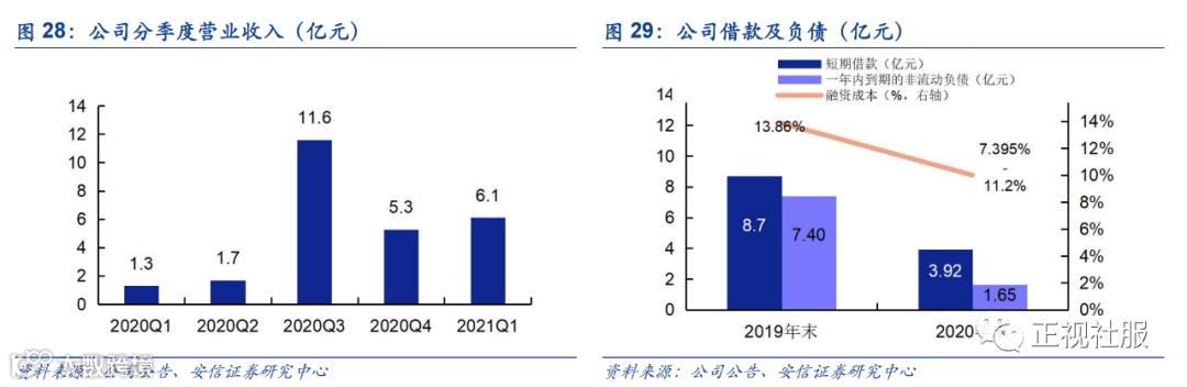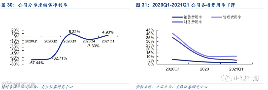 公司各项费用率持续下降。公司2021Q1销售费用率为1.91%,较2020年环比下降1.01pct,同比下降4.26pct;管理费用率为10.49%,较2020年环比下降0.99pct,同比下降30.3pct;财务费用率为5.22% ,较2020年环比下降4.05pct,同比下降29.85pct。