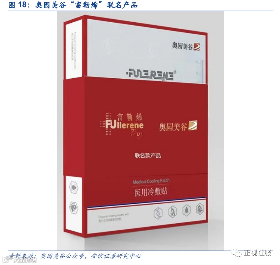 战略合作稳步落地,奥园美谷首推两款“富勒烯”联名医美新品。奥园美谷推出富勒烯联名产品:富勒烯炫白瓶及富勒烯医用冷敷贴。富勒烯炫白瓶旨在发力美白消费市场,根据智研咨询发布的《2017-2022年中国美白市场监测及前景预测报告》显示,20~50年龄层之间的女性消费者中,超过80%的女性有美白需求,每年有近660亿元的美白消费市场。而根据奥园美谷官方公众号显示:奥园美谷富勒烯医用冷敷贴已在同步生产,在原有面膜基础上进行了美白功能的进一步迭代升级,预计7月份即可投放市场。富勒烯面膜系列目前日产能约15万片,工厂扩产计划已在推进。