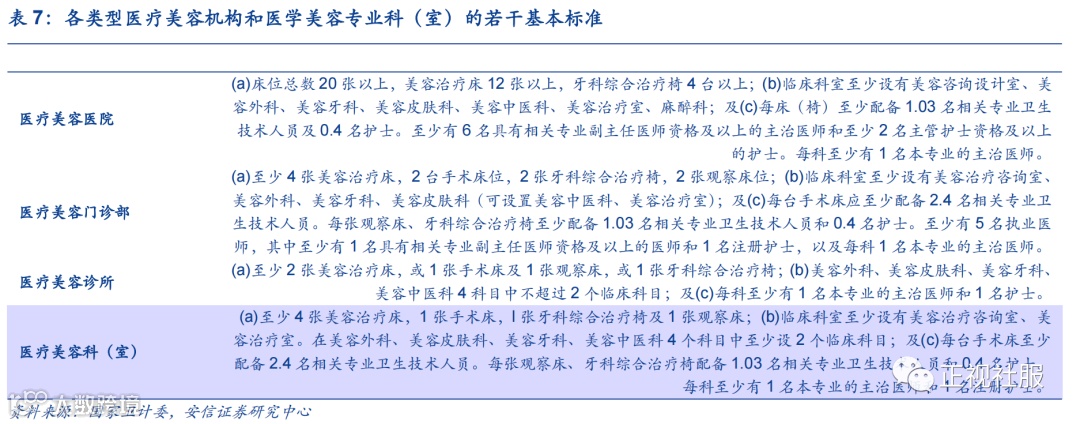 根据国家卫计委于2002年颁布的《美容医疗机构、医疗美容科(室)基本标准(试行)》中对各类型医疗美容机构和医学美容专业科(室)的若干基本标准亦有明确规定。