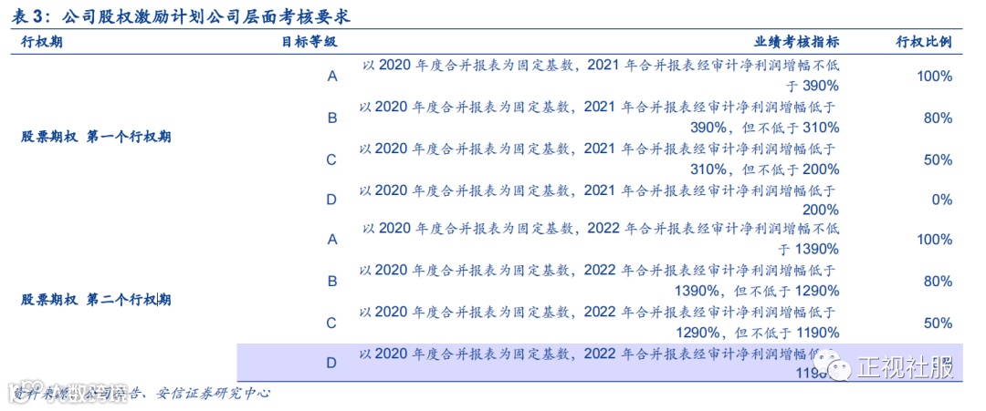 ■ 股权激励绑定核心管理人员利益,调动组织活力提升效率。公司拟向董事、高管及核心管理人员共14人授予股票期权共计1820万份,约占股本总额2.33%,行权价格为12.62元/份。股权激励方案中的100%行权指标为2021年、2022年净利润较2020年将分别增长不低于390%、1390%,对应净利润不低于1.87亿元、5.69亿元。