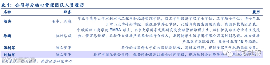 核心管理层管理经验丰富,具深厚科技及医美产业背景。2020年7月,新一届董监高团队上任,公司驶入发展新周期。现任部分管理层成员在科技、医美大健康和金融、财务领域有着资深经验。董事、总裁胡冉具工学和经济学双学士学位、工学硕士学位及经济学博士学位,历任奥园集团副总裁、奥园科技集团总裁。执行总裁徐巍在大健康产业医疗医院管理、投资行业有16年经验,其能力背景与公司未来主业方向高度契合。独立董事张树军历任南方医科大学南方医院副院长、高级工程师,现任多家医学机构高级委员。独立董事付细军持有中国注册会计师、税务师和澳洲注册会计师资格,现为致同会计师事务所广州分所合伙人。专业且经验丰富的核心力量,为奥园美谷的管理进阶带来充沛动力。