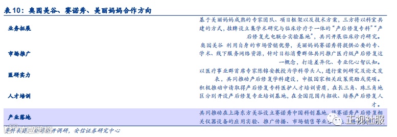 携手激光仪器巨头赛诺秀,试水产后修复细分赛道。2021年5月8日,奥园美谷、赛诺秀、美丽妈妈在上海签署合作协议。美国赛诺秀激光公司成立于1991年,于2005年在纳斯达克上市,是全球最大的医美激光生产服务商,致力于医美激光的研发、生产、临床等,发明了全球第一台染料激光、第一台皮秒激光,具有大量的专利技术,在行业里有着良好的口碑和优秀的业绩。美丽妈妈作为中国产后恢复行业创建者和领导者,致力于为孕产期女性提供一站式、个性化的孕产健康管理整体解决方案,至今已在中国200多个城市拥有数百家服务网点,并在新加坡、马来西亚等海外城市设立了运营中心。奥园美谷、赛诺秀、美丽妈妈三方携手整合各自优势资源,共同推动产后修复诊疗技术方案的研发、诊疗病例研究,并积极开拓医疗级产后修复这一新兴细分市场。