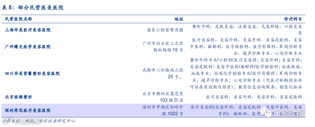 从供给端而言,正规机构占比仍然较低,监管趋严背景下大浪淘沙,利好具有资质的规范机构。国内整形市场逐渐成熟,,医美行业的火爆吸引了大量的参与者。根据前瞻产业研究院数据,2019年全国取得医疗美容机构许可资质的医疗机构,包括综合医院的医疗美容科室、专科医院、门诊部、诊所约1.3万家。其中医院类医美机构占比为29.1%,门诊部类医美机构占比为32.9%,诊所类医美机构占比为38%。从需求端而言,随着全社会的医美意识崛起,未来行业潜力巨大。随着生活水平的提升,对于高品质消费的观念逐渐强化,加之医美知识的普及,人们有更大的意愿进行医疗保健来完美自己。