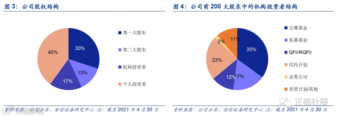 控制权变更后,公司股权结构更加稳定。奥园美谷的控股股东是中国奥园(3883.HK),持有公司30.04%股份(有表决权股份)。公司第二大股东持股比例为13%,机构投资者持股17%,个人投资者持股40%。截至2021年4月30日,公司前200大股东中机构投资者结构较为分散,其中公募基金持股比例最大,为35%,私募基金持股17%,QFII/RQFII持股12%,信托计划持股23%,证券公司持股2%,资管计划及其他持股11%。自控制权变更以来,公司机构投资者持股比例持续提升,股权架构愈加稳定。