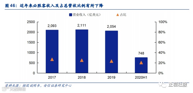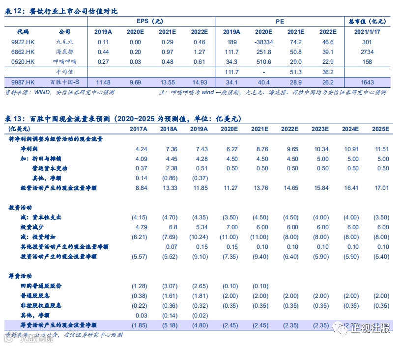 ■百胜中国是国内领先的餐企之一,品牌矩阵丰富且经营稳健扩张。①百胜中国在国内餐饮的市占率约1.4%(第二/三名为0.6%和0.5%),旗下品牌为肯德基和必胜客、小肥羊、黄记煌等,为国内龙头餐企2019年公司主品牌肯德基和必胜客的同店分别实现4%和1%正增长,同时新增1006家门店;在2017~2019年整体实现营收467/578/612亿元,归母净利25.81/41.87/49.74亿元,经营状况稳健向好,且疫情期间在外卖助力下仍实现较好盈利,2020Q1-3逆势实现归母净利润26.83亿元。根据招股书,公司计划在未来计划达成20000家门店的目标;并根据公司2020Q2季报指引,预计公司后续每年或有望保持新增800-850家的展店速度。②公司于2020年9月赴港IPO,募资主用于:1)餐厅门店扩张:占募资的45%,约86.73亿港元。2)数字化、食品创新及优势市场资源的整合:占募资的45%,约86.73亿港元。