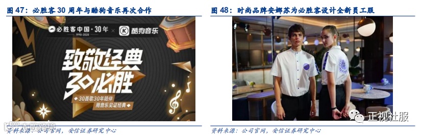 与餐饮品牌以及其他行业品牌的合作,帮助必胜客丰富品牌形象及吸引消费者注意力。自2016年开始,必胜客陆续和酷狗音乐、安娜苏等非餐饮品牌进行了跨界合作并推出相关产品,成功吸引了不同消费群体的注意力以及丰富了品牌形象。必胜客团队预计类似的合作将在未来持续,并且合作形式将更加多元化,合作品牌则会根据消费者数据分析而进行精简化的选择。