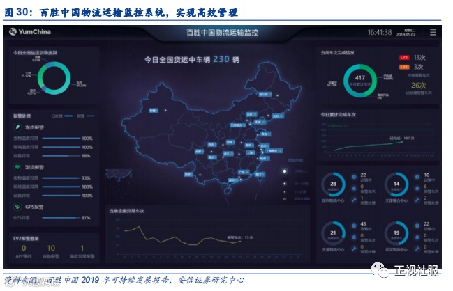 高度数字化的物流管理系統,高效的信息传递能够促进门店扩张与提升运营效率。截至2020年6月30日,公司在中国已拥有由25个物流中心及6个集散中心组成的物流网络。公司以先进全面的冷链技术、仓库管理系统、自动分检系统、运输管理系统、物联网及GPS技术等工具对供应运输环节保驾护航,能够确保运输过程中的食品安全,有效提升供应链中的分拣、运输效率,实现供应商、物流中心到餐厅的产品追踪,为供应链完整性提供更多保证和赋能。