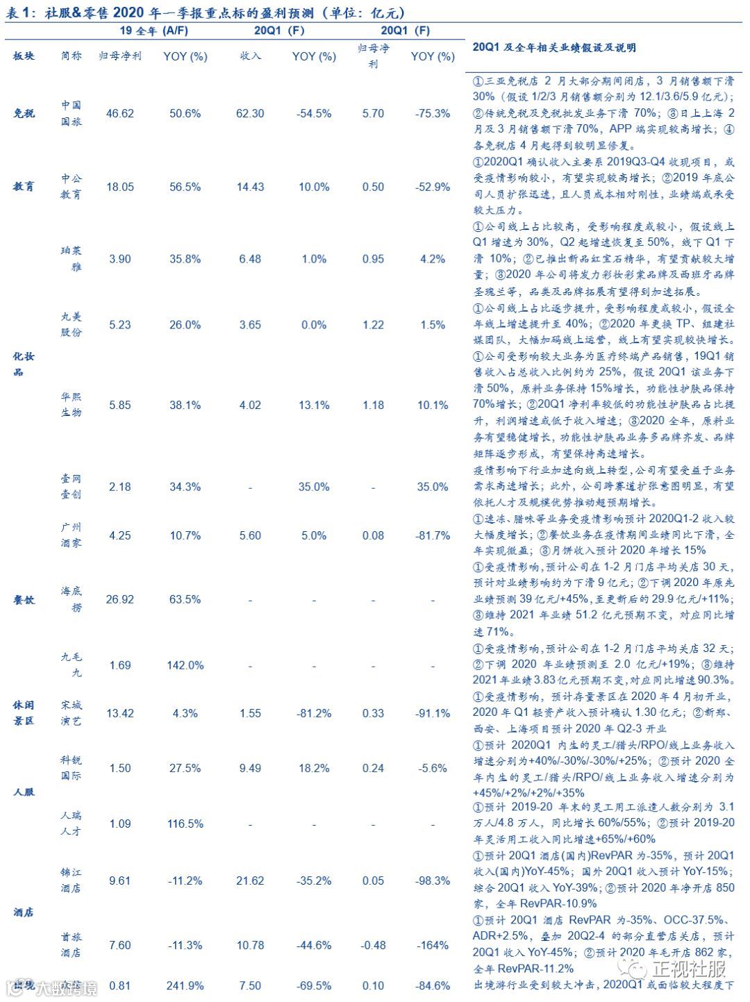 我们为投资者从四个维度来梳理零售社服板块一季报前瞻:①线下必选消费:在疫情期间有正向影响,经营数据在外出就餐减少和CPI上行推动有望大幅改善,收入和利润增速或好于预期,继续重点推荐超市板块;②线上零售消费:主要受1-2月份的物流影响和供应商复工延后所致,但预计影响相对有限,且后续3月随物流和企业复工推进销售有望快速恢复,中长期线上消费渗透率有望进一步提升,继续推荐化妆品龙头公司;③就业类服务业:职业教育、灵活用工短期一季度影响更多是收入确认有所延后,但在目前受整体就业压力较大影响,职教培训和灵活用工的需求有望在疫情过后显著受益并体现逆周期属性。B端(企业)来看:客户在疫情期间出于降低用工的风险和成本考虑,对灵活用工的认知度迎来提升,尤其是新经济企业客户的订单量有望迎来大幅增长。C端(拟就业人员)来看:就业压力加大下学生在招聘、学历和技能类的深造意愿加强(叠加今年基础公务员和考研扩招),继续利好职业教育龙头。④餐饮旅游酒店等线下可选消费:1-2月经营受疫情影响较大但为一次性冲击不影响长期逻辑。目前大多数优质标的中长期估值仍处相对低位(我们在此前报告《危中藏机,静待新起点》中已提出其向下的空间或相对有限),且市场对一季报业绩或已有一定预期,后续随基本面3-6月逐步恢复下估值有望迎来修复。