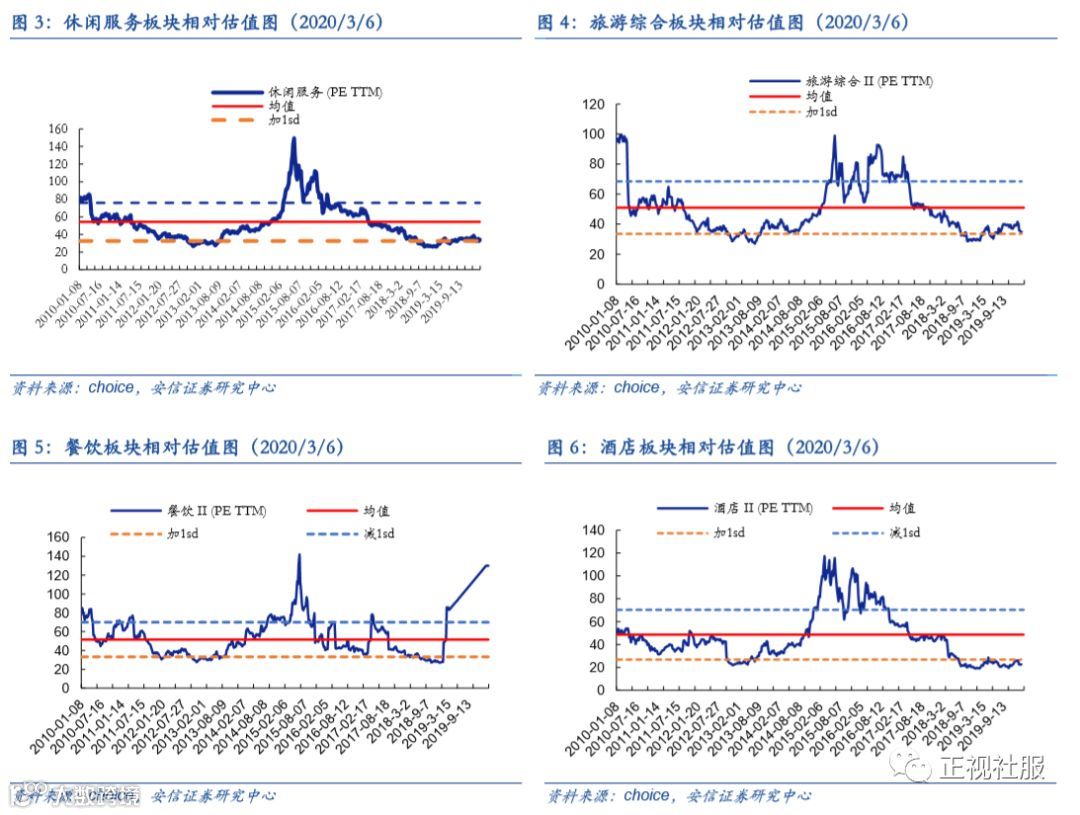 各板块当前PE TTM:截止2019年3月22日,休闲服务板块为35.13X,旅游综合板块为33.07X,餐饮板块为130.00X,酒店板块为24.34X。