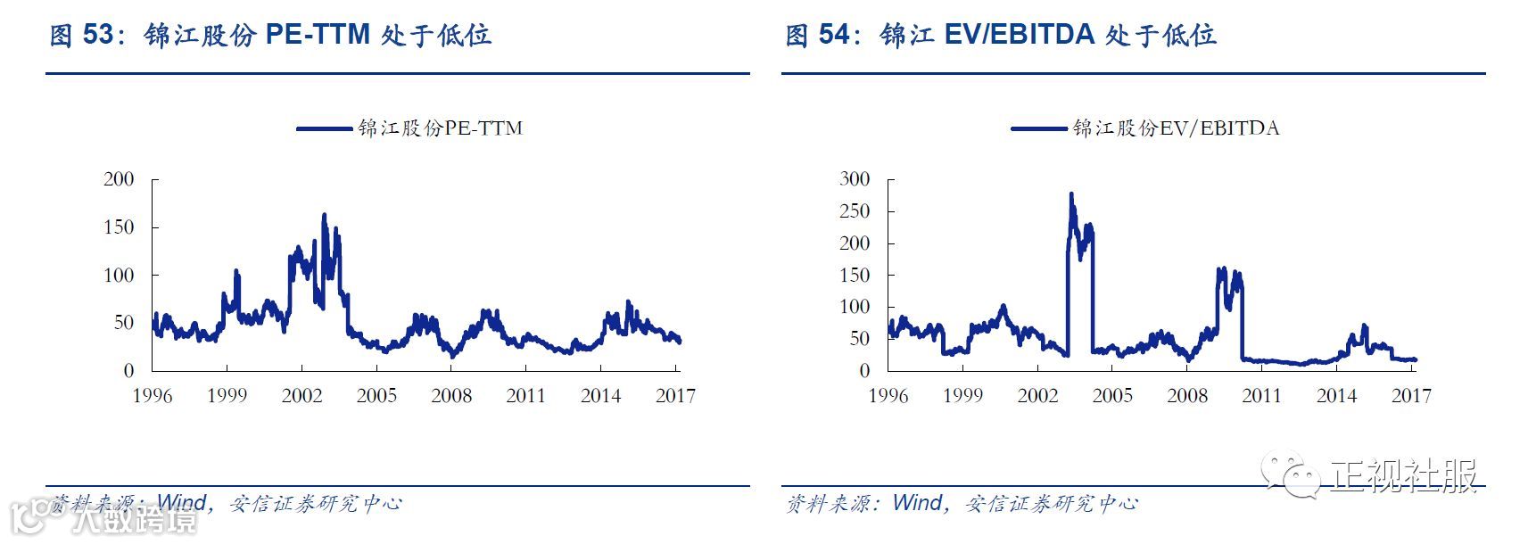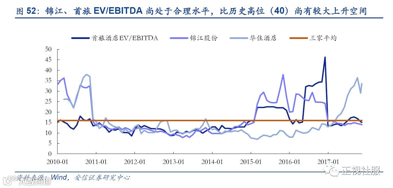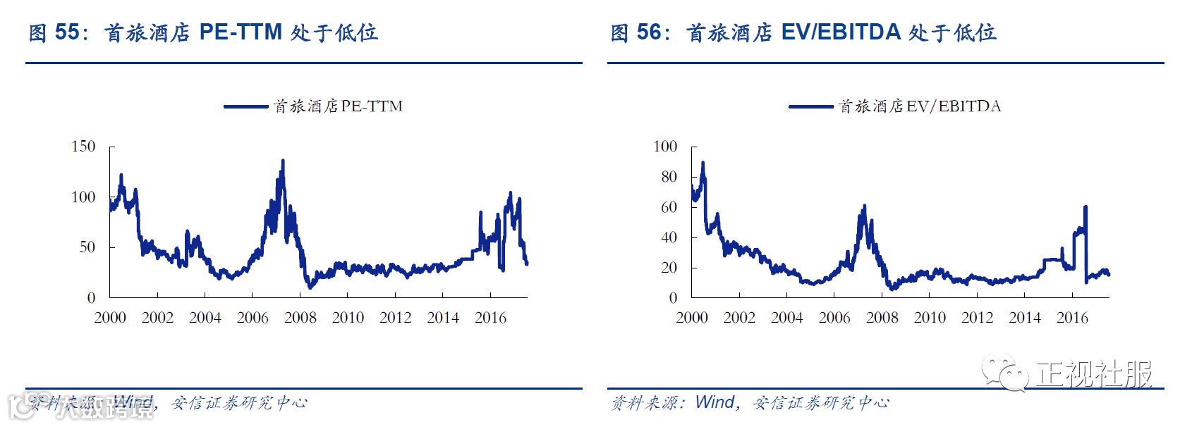 ■ 华住/首旅/锦江PE(TTM)分别为51/35/32,同时三家酒店集团随着明年业绩释放后估值进一步消化,预计华住/首旅/锦江2018PE39/25/24;从EV/EBITDA看,首旅酒店、锦江股份估值均处于历史均值以下,且距离历史高位存在较大差距,其中首旅、锦江当前值为15.1、14.0,历史均值为15.6、17.5,峰值为46.3、37.9。预计酒店行业格局继续优化,龙头尽享市场空间,相对行业具备溢价空间。