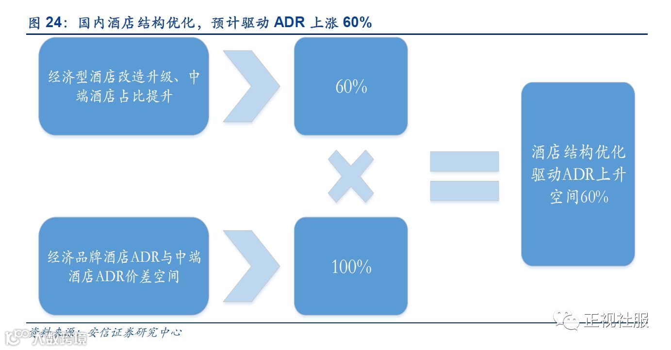 ■ 如以中端酒店占比40%、经济型品牌占比60%进行加权,酒店行业平均房价上涨40%-60%,将驱动行业盈利增长50%-110%。