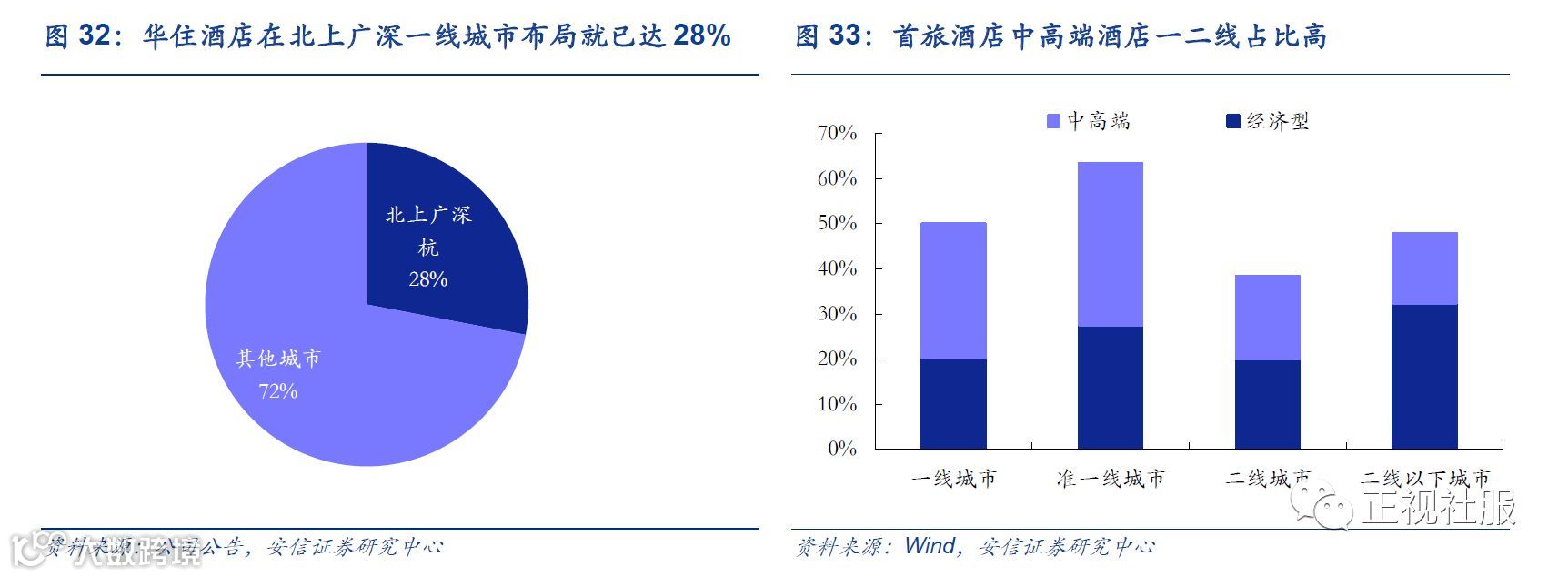 以华住为例,华住将近28%的酒店布局在北上广深杭等城市,一二线城市占比高;