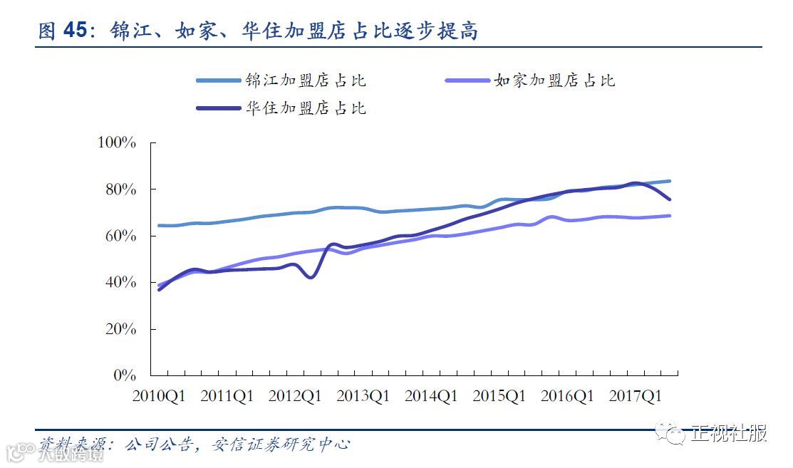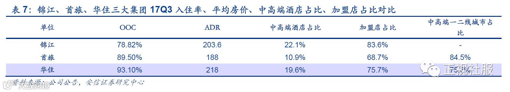 ■ 经营方面,17Q3华住酒店入住率最高(93%),且平均房价最高(218元),中高端酒店占比锦江股份最高(22.1%),加盟店占比锦江股份最高(83.6%)。酒店行业格局继续优化,龙头尽享市场空间,相对行业具备溢价空间。