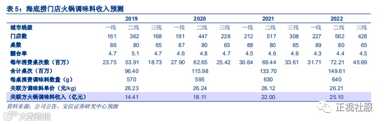 2) 天然宣传窗口:公司的底料和调味料可以依托门店进行线下售卖,同时海底捞的顾客在海底捞进行消费后,对海底捞的火锅底料会有更直观的认知,增加购买海底捞调味料的概率。