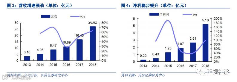 公司营收增速强劲,净利稳步提升。公司营业收入持续快速增长,2013年营收3.16亿,2015年跃升至8.47亿,当年增速69.9%,2016-2018年公司营收增速持续提升,2018年实现营收26.82亿,增速61.7%,势头强劲,主要得益于公司第三方业务渠道的开辟和自热小火锅新业务的发展。公司净利提升稳定,2013-2018年持续稳定增加,5年CAGR为88.1%,2018年实现净利5.18亿元,同比增长98.5%。