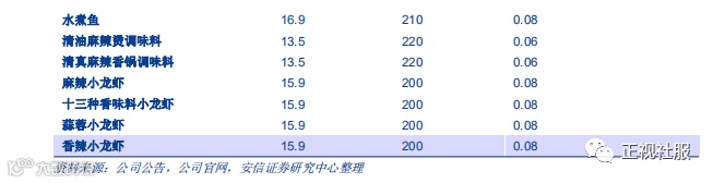 ■品牌产品驱动力:海底捞品牌力赋能+餐厅挖掘客户最新需求,公司底料调料在C端的爆款新品及认可度业内领先。公司产品不仅具备“海底捞”品牌无限期免费使用的先天优势,同时其全国的400多家火锅餐厅还具备为公司挖掘市场最新需求及产品宣传的额外帮助。颐海的产品价格集中在0.06-0.08元/g,定位增速更快、赛道更优的中高端市场,品类更具年轻化和创新(如青椒牛油锅底,小龙虾调料)。与市场上大多数单一生产火锅底料及调料的企业相比,其海底捞集团的出身带给其三层天然优势:1)公司主要底料产品在量产之前,可以作为新款在海底捞店内供应顾客,积累市场一线反馈,及时觉察C端市场动向及挖掘顾客喜爱的口味,保证品类与时俱进及降低试错成本;2)公司的底料和调味料可以依托门店进行线下售卖,同时海底捞的顾客在海底捞进行消费后一部分可转化为公司顾客;3)海底捞在火锅相关领域具有很强的全国知名度和认可度,不仅在底料领域具备优势,也可为相关品类中式复合调味料节省下大量品牌营销费用。
