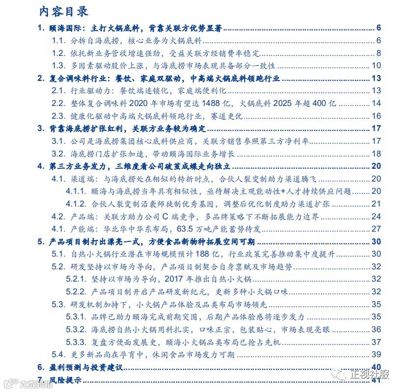 关于海底捞带给颐海第三方业务什么优势,目前市场上把重点过多放在品牌力上。我们认为,海底捞带给颐海第三方业务的不仅仅是品牌,还有餐厅作为产品前期实验基地和天然宣传窗口的独特功能。