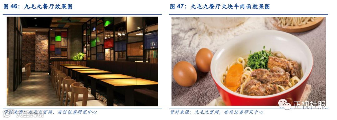 1)九毛九:是公司的创始品牌,作为华南地区第一家以西北菜为主打的连锁餐厅品牌,位列中国西北菜餐饮市场TOP2。九毛九用餐场景定位于为家庭聚餐,提供60-80种菜品,以山西面食及家常菜为主,人均消费在50-70元。餐厅选址中心一直锁定购物中心,随着购物中心数量的增长以及居民外出用餐次数的增长,九毛九的业绩实现快速增长。
