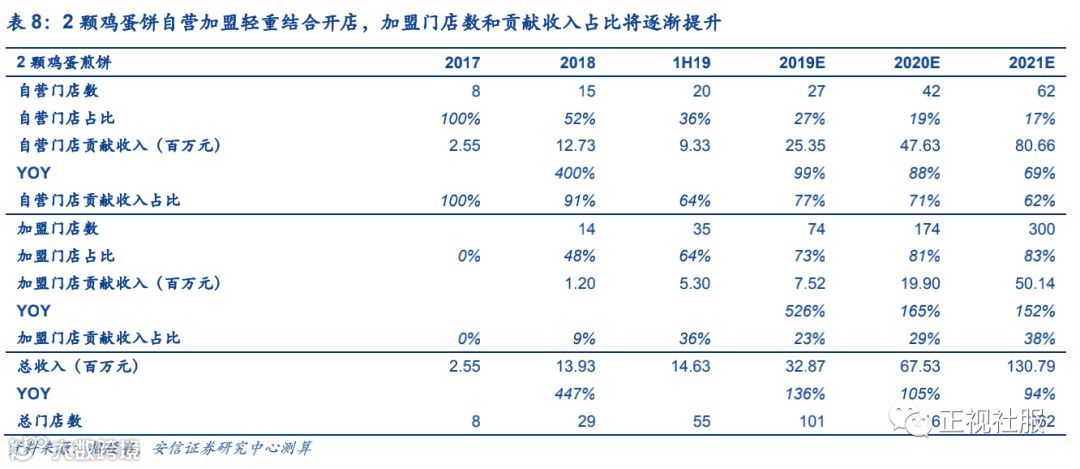 3.1.3. 2颗鸡蛋煎饼:轻重结合模式开店,2019-2021年将迎来高速增长