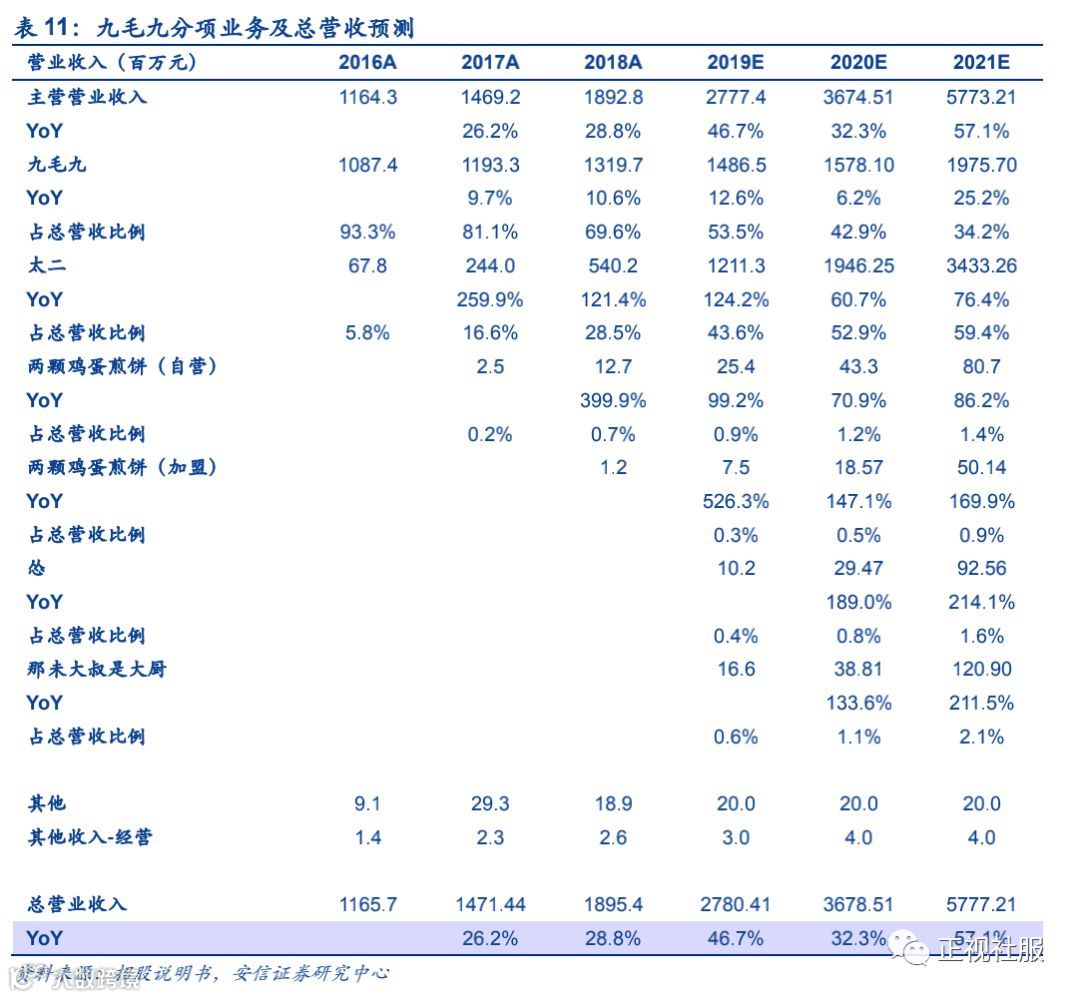4. 投资建议:太二快速展店推动高成长,预计2021年业绩3.8亿元