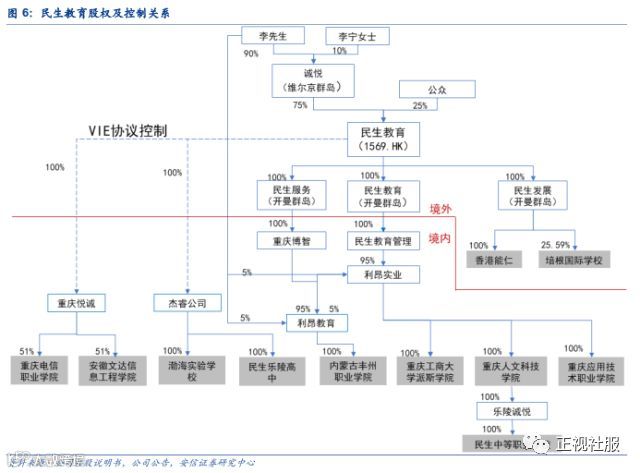 由于政策限制,公司上市后的收购采用VIE架构进行。公司2017年3月上市后收购的安徽文达、重庆电信、渤海实验学校以及乐陵民生高中,均以VIE方式实现控股。