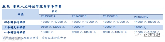 学生结构中本科生占比较高,优于竞争对手。2016/2017学年在校生中本科生占77.9%,远高于中教控股和新高教集团。重庆人文科技学院和派斯学院本科生占比超过90%,其余为专科院校,未来有升本科的机会,本科生学费高于专科,因此本科生占比高的学生结构有利于提升整体毛利率。
