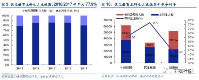 ■公司本科价值被低估,低估幅度高于25%。①通过汇总统计上市公司收购高等院校的案例,从已披露数据的案例来看,本科院校的估值水平约为专科院校的1.5倍;②我们认为应对本科和专科给予不同估值,本科估值应为专科估值的1.5倍左右,故引入加权2018E净利=本科净利*1.5+专科净利,简化算法为加权2018E净利≈(本科生比例*1.5+专科生比例)*2018年净利;③通过将民生教育与新高教集团、中教控股相比较,可知考虑到本科与专科的估值差以后,民生教育的估值水平远低于另外两家公司;另由于民生教育获得约1亿元重庆政府财政补贴,直接扣减公司预计净利润1亿元后发现民生教育的估值仍远低于另外两家公司,低估幅度约为25%,考虑到其他高校同样享受部分政策优惠,可知公司本科价值被低估幅度应高于25%。