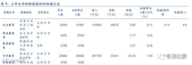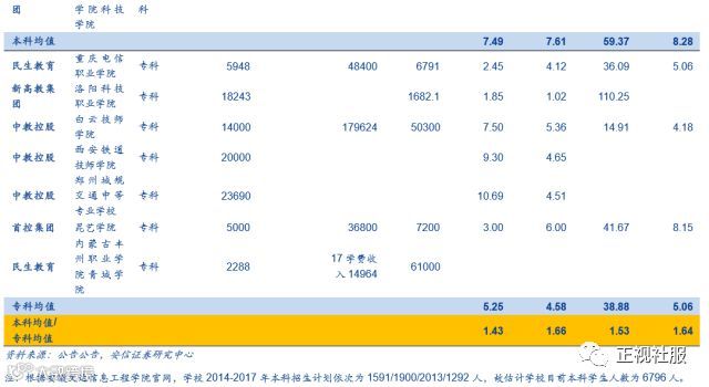 我们汇总统计了上市公司收购高等院校的案例,从已披露数据的案例来看,本科院校的估值水平显著高于专科院校。具有本科办学资格的高校,估值/学生人数(万元/人)均值为7.61,估值/净利润均值为59.37,估值/收入均值为8.28,均为专科院校相应比例的1.5倍左右。
